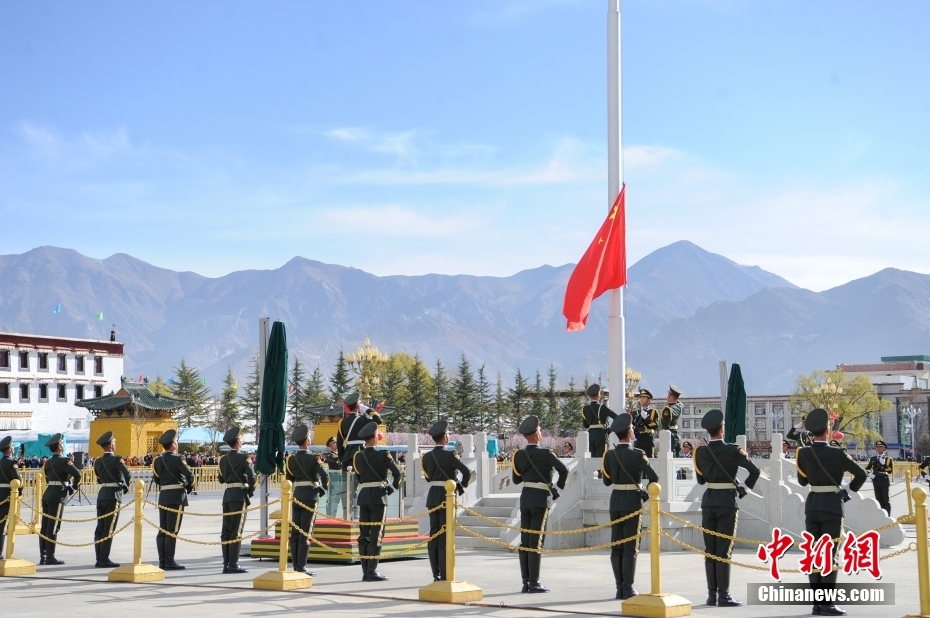 3月28日,西藏各族各界人士聚集在拉薩布達(dá)拉宮廣場(chǎng),升國(guó)旗、唱國(guó)歌,參加西藏百萬農(nóng)奴解放65周年紀(jì)念活動(dòng)。圖為升國(guó)旗儀式現(xiàn)場(chǎng)。中新社記者 貢嘎來松 攝