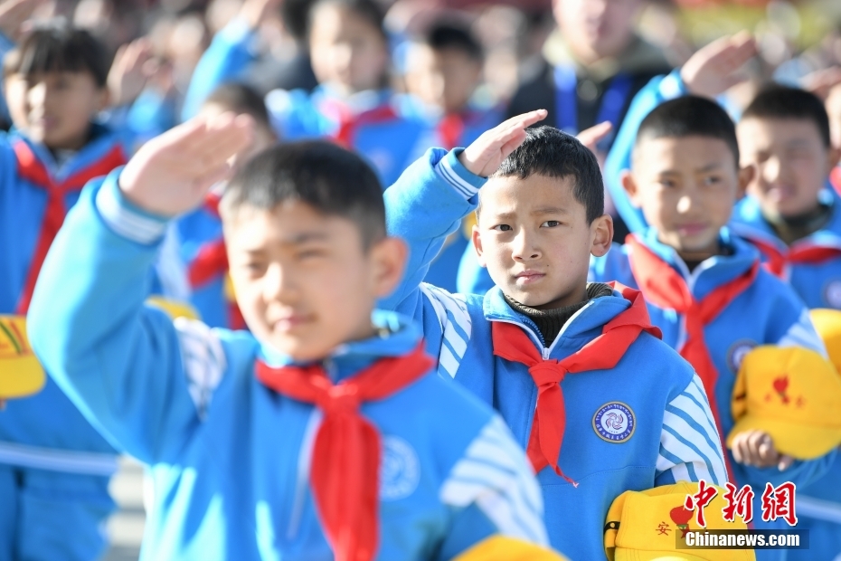 3月28日,西藏各族各界人士聚集在拉薩布達(dá)拉宮廣場(chǎng),升國(guó)旗、唱國(guó)歌,參加西藏百萬農(nóng)奴解放65周年紀(jì)念活動(dòng)。圖為升國(guó)旗儀上的學(xué)生代表。中新社記者 貢嘎來松 攝