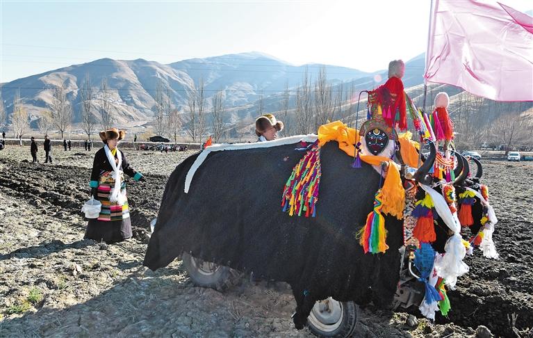 在社區高標準農田,人們身著盛裝齊聚田野。社區居民們把裝扮一新的拖拉機開到農田里,春耕儀式在古老的《春耕之歌》的悠揚旋律中正式舉行。