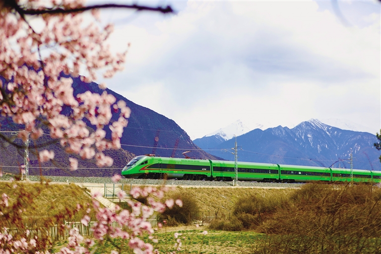 自2021年拉林鐵路開通以來,“搭乘復興號去看桃花”已成為更多游客的選擇。作為連接“日光城”拉薩和“雪域江南”林芝的“新天路”,拉林鐵路串起了西藏東南地區的“精華”風景,乘坐拉林鐵路列車,不僅能體驗到世界最高海拔運行的動車速度,還可以透過車窗盡情欣賞雅魯藏布江兩岸壯觀的桃花林,飽覽雪域高原的壯麗美景。