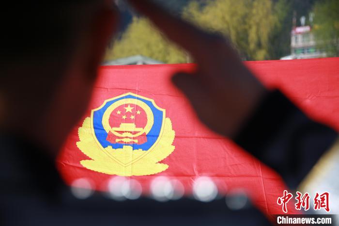 圖為吉隆海關緝私警察李增君向警旗敬禮。肖富貴 攝