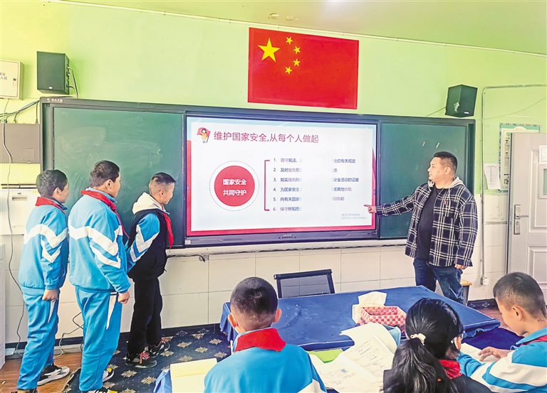 圖為在拉薩市第三小學,老師向學生講解如何在日常生活中維護國家安全。胡舟 記者 次仁平措 攝