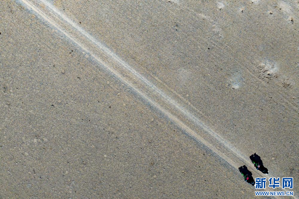 4月14日,野保員在色林錯國家級自然保護區(qū)進行日常巡邏(無人機照片)。新華網(wǎng) 旦增努布 攝