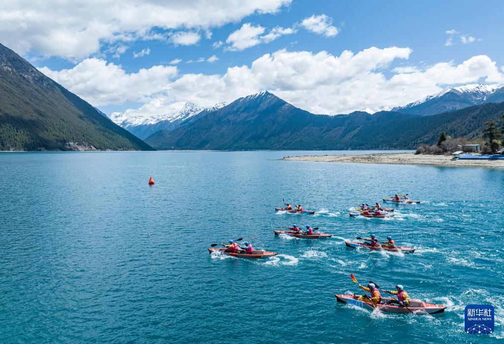 4月20日,2024年巴松措國際漂流公開賽在西藏林芝市工布江達縣開賽。30余支隊伍在巴松措的湖面上展開角逐,完成兩人漂流艇競速賽和四人漂流艇排位賽的比拼。