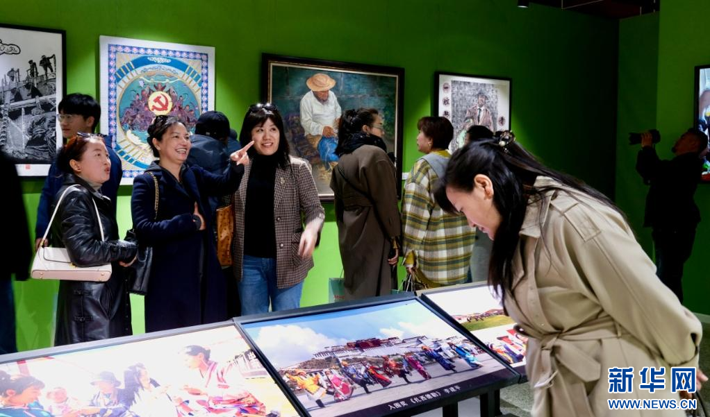 4月28日,第五屆民族團結書法、美術、攝影、微視頻大賽作品展現場。新華網 旦增努布 攝