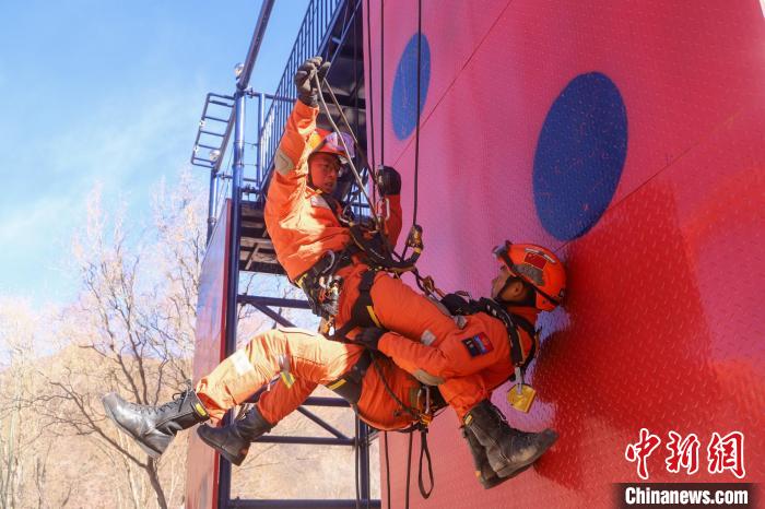 山岳救援繩索個人技術競賽現場,全面考驗參賽隊員繩結制作、倍力系統制作、上升、過繩結、輔助攀登、下降、繩索轉換等多項救援技術。