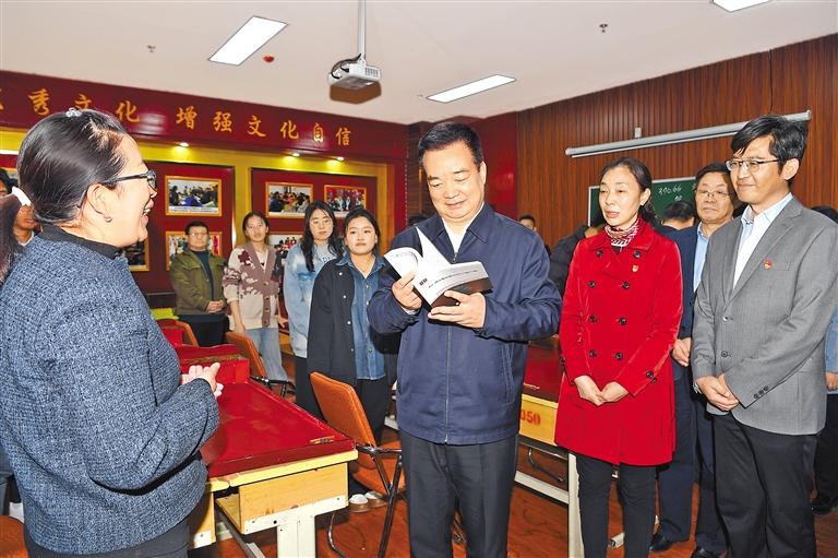 調(diào)研中,王君正指出,師范院校承擔(dān)著為中小學(xué)培養(yǎng)師資的重任,責(zé)任艱巨、使命光榮。要堅持正確辦學(xué)方向,自覺用習(xí)近平新時代中國特色社會主義思想指導(dǎo)學(xué)校建設(shè)辦學(xué)實踐,堅持不懈用馬克思主義中國化最新成果武裝廣大師生頭腦。堅持立德樹人根本任務(wù),圍繞為黨育人、為國育才,遵循教育規(guī)律和人才成長規(guī)律,努力培養(yǎng)德智體美勞全面發(fā)展的社會主義建設(shè)者和接班人。進(jìn)一步加強(qiáng)師范教育體系建設(shè),聚焦經(jīng)濟(jì)社會發(fā)展新任務(wù),積極推進(jìn)師范教育教學(xué)改革,突出需求導(dǎo)向,促進(jìn)教育鏈與人才鏈、產(chǎn)業(yè)鏈、創(chuàng)新鏈深度融合,提高辦學(xué)質(zhì)量和辦學(xué)效益。高度重視教師隊伍建設(shè),把師德師風(fēng)建設(shè)擺在首要位置,提高教師培養(yǎng)培訓(xùn)質(zhì)量,培養(yǎng)造就一支師德高尚、業(yè)務(wù)精湛、結(jié)構(gòu)合理的高素質(zhì)專業(yè)化教師隊伍。