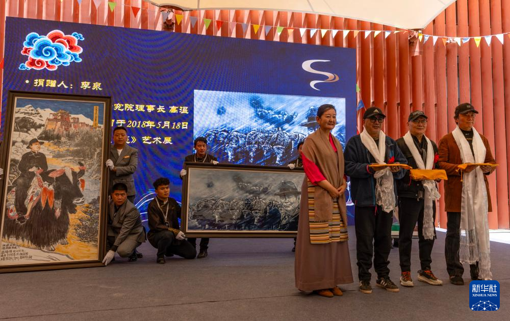 5月18日,吳雨初的友人為西藏牦牛博物館捐贈瓷畫《“亞格博”在西藏》。新華社記者 姜帆 攝