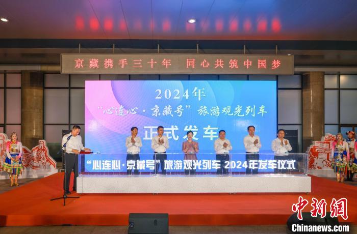 由文化和旅游部、國鐵集團指導,北京援藏指揮部、拉薩市城關區人民政府等單位組織的2024年“心連心·京藏號”旅游專列在北京西站首發。