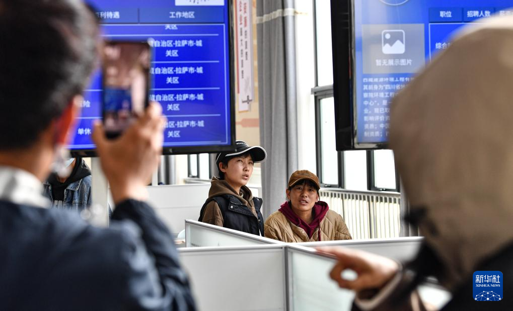 5月24日,求職者在招聘會現場與用人單位工作人員交流。新華社記者 晉美多吉 攝