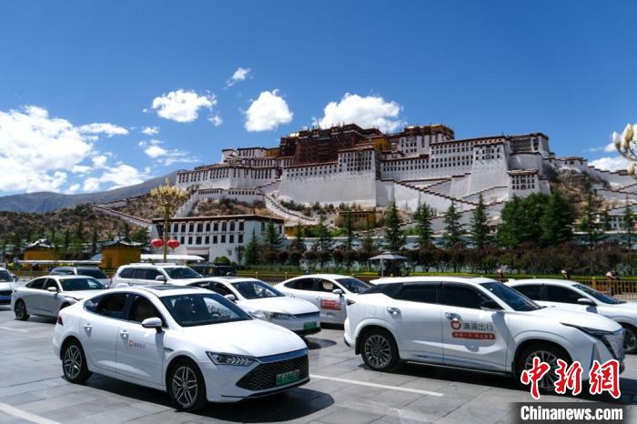 5月28日,懸掛新能源汽車專用號牌(俗稱綠牌)的汽車途經拉薩布達拉宮前。中新社記者 江飛波 攝