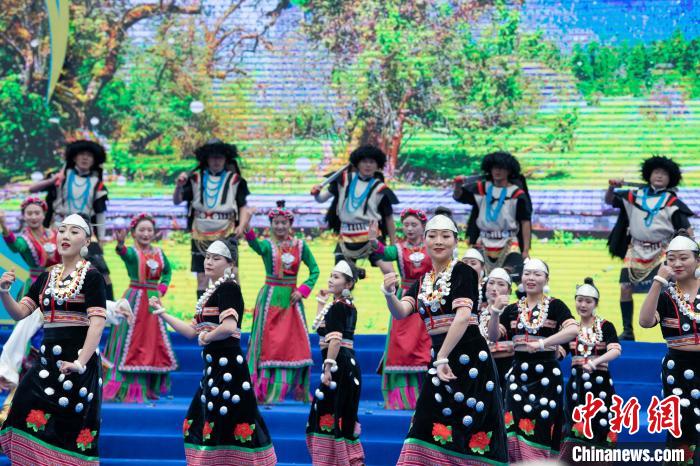 圖為開幕式文藝演出現場。貢嘎來松 攝