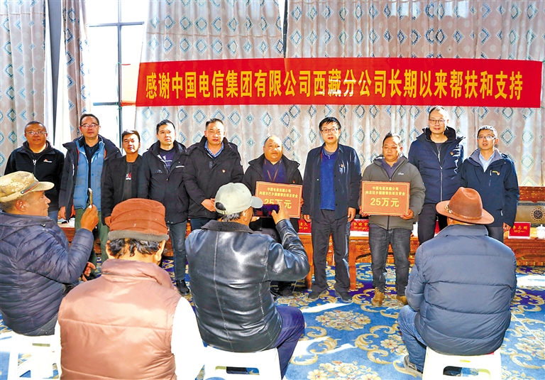 中國電信西藏公司黨委書記、總經理周清久代表公司向霍爾巴鄉和吉拉鄉分別捐贈25萬元幫扶資金。