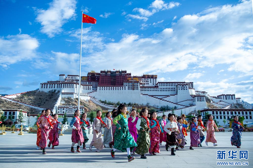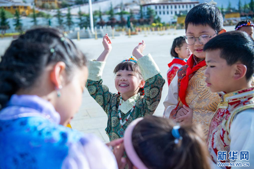 6月1日,小朋友們在布達拉宮廣場歡慶“六一”國際兒童節。新華網 旦增努布 攝