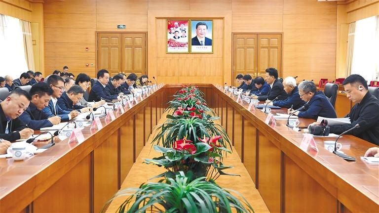 日前,自治區黨委書記王君正在拉薩與全國人大常委會副委員長洛桑江村率隊的全國人大常委會調研組一行座談。這是座談現場。 本報記者 李洲 攝