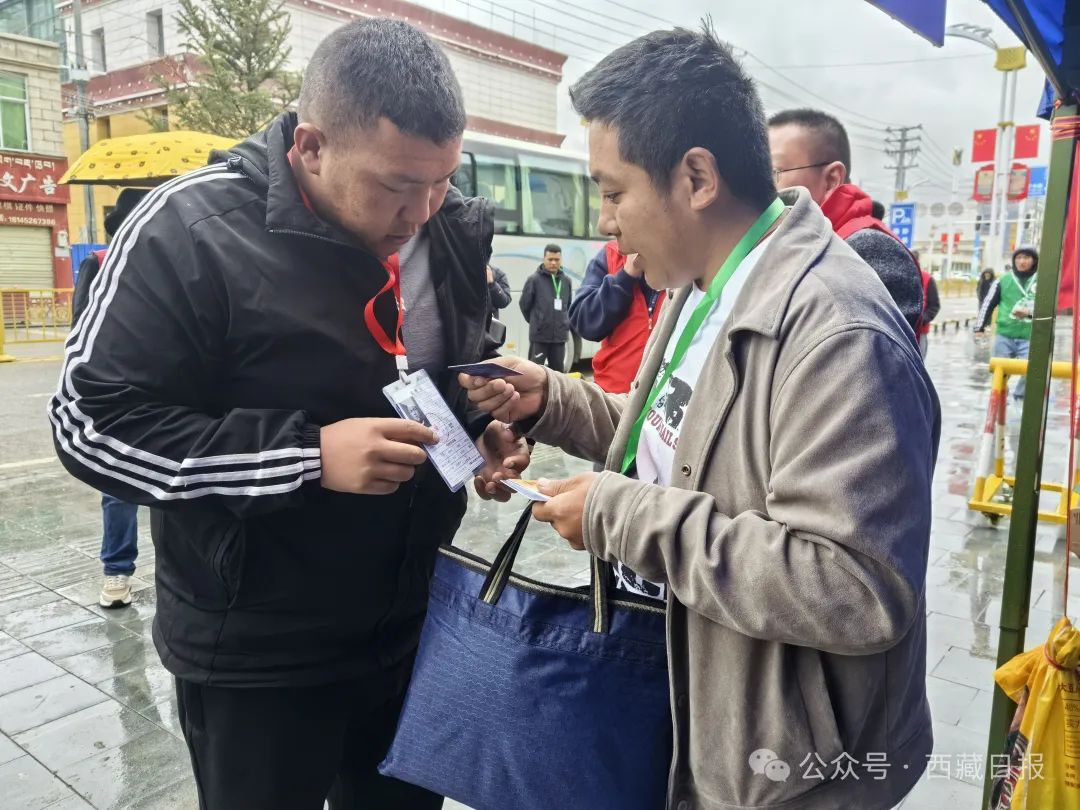 圖為那曲市高級中學考場外,老師正在收放第一科語文考試結束學生的準考證,等待下午考試前再統一發放。記者 萬靖 攝