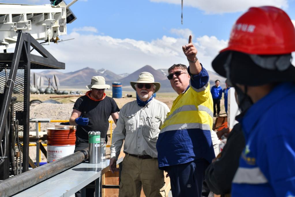 外國科學(xué)家指導(dǎo)鉆探技術(shù)人員架設(shè)湖泊鉆探平臺(tái)(6月1日攝)。新華社記者晉美多吉 攝