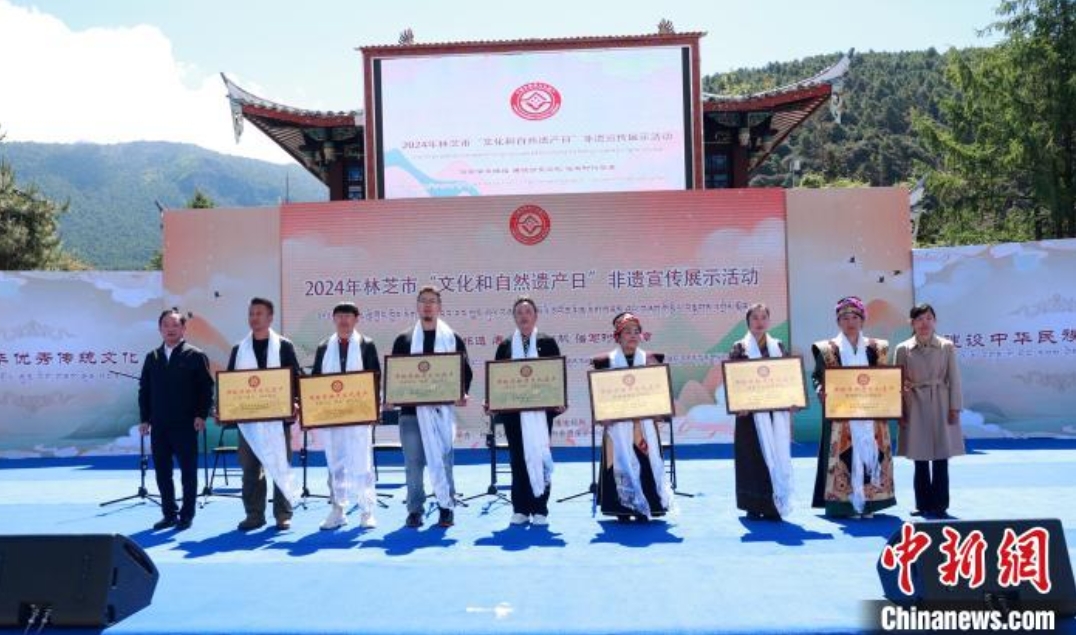 林芝市第二批市級非物質文化遺產代表性項目名錄在此間公布,林芝市委常委、宣傳部部長鄧曉紅,市委宣傳部副部長、市文化廣播電視局黨組書記蔣澤軍,為入選的市級非遺代表性項目授牌。