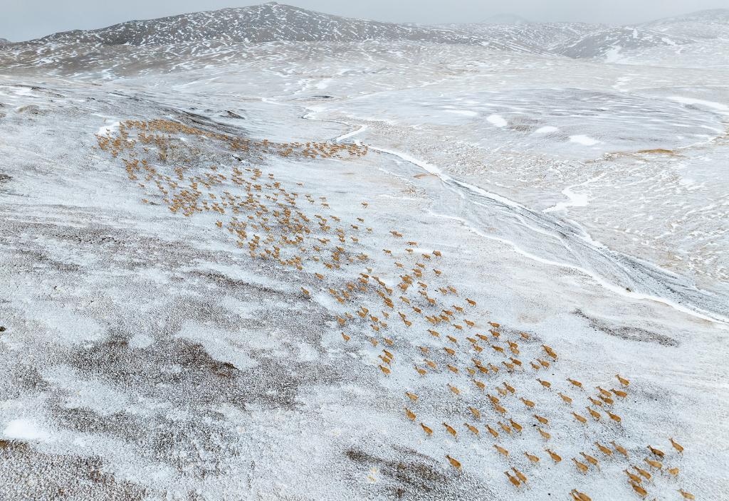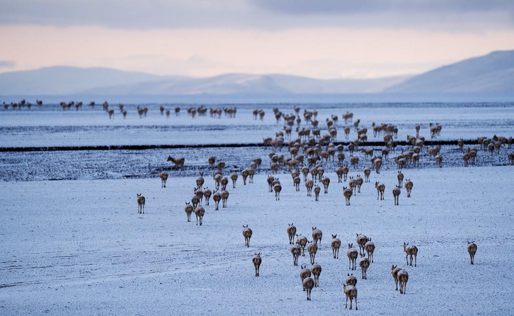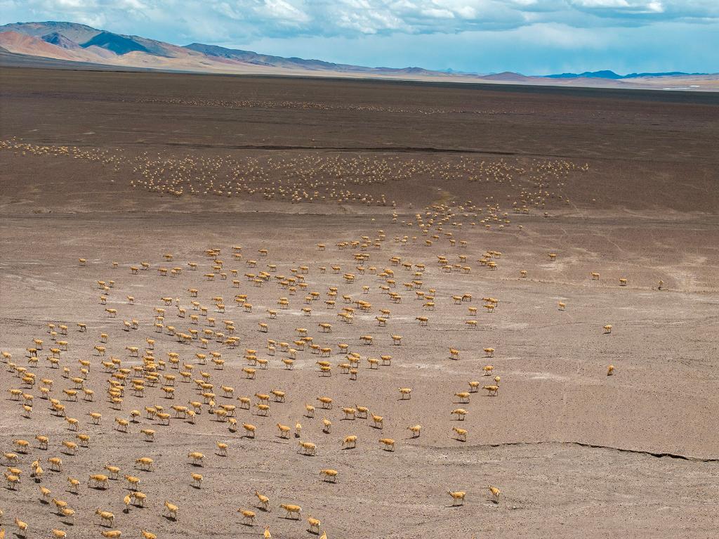 ↑ 數萬頭藏羚羊在羌塘國家級自然保護區遷徙。