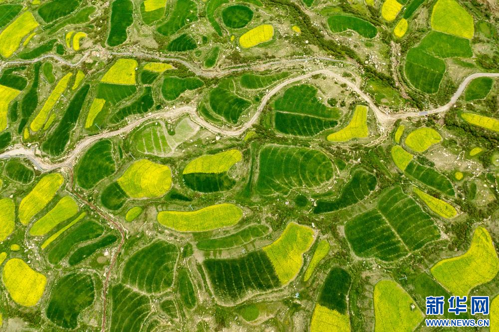6月21日在西藏山南市乃東區境內拍攝的田園風光(無人機照片)。新華網 旦增努布 攝