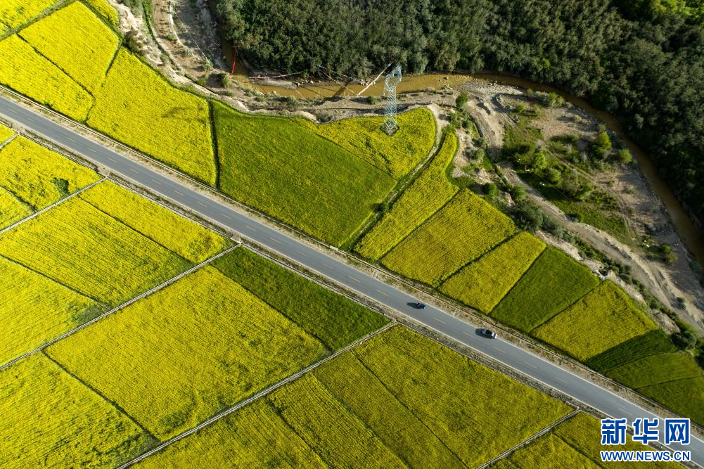 盛夏時節,在西藏山南市乃東區雅礱河谷,金燦燦的油菜花與綠蔥蔥的青稞地交相輝映,河谷變成大自然的調色盤,宛如一幅絢麗的畫卷。