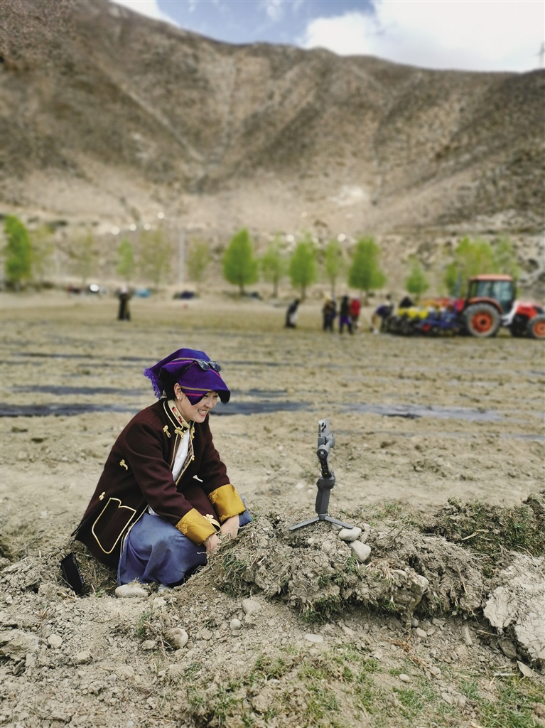 面朝土地、席地而坐是阿佳旺姆的直播常態,她手中的特色農產品還帶著剛摘下時的泥土清香。阿佳旺姆奔波在各個鄉親家的田間地頭,架起手機支架就開始直播,她覺得不論走多遠的路,只要鄉親們能拿到滿意的收入,一切都值得。如今,手機變成了田間地頭的“新農具”,直播也儼然成為一項“新農活”。在阿佳旺姆的直播間里,有很多西藏的特色農產品遠銷全國各地。