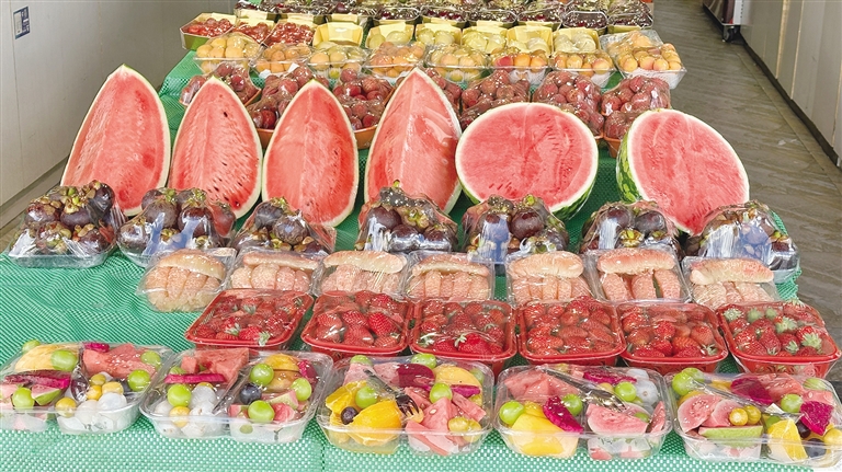 線下時令水果銷售火熱,線上選購水果的方式也越來越受到消費者的歡迎。記者打開美團外賣App搜索水果,數(shù)十家水果店出現(xiàn)在搜索列表中,每家水果店出售的時令水果種類豐富、價格從幾元到幾十元不等,而且不少店鋪還出售特價的盒裝鮮切水果,例如200g鮮切西瓜加哈密瓜雙拼盒售價為3.2元、500g鮮切麒麟西瓜售價為19.8元、250g繽紛混合水果切售價為11.9元。“在網(wǎng)上買水果很方便,不用自己出門選購,在家下單就行了。”市民曲女士說,“家里只有我一個人,水果買多了也吃不完,買點盒裝的鮮切水果,種類豐富,價錢也便宜。”