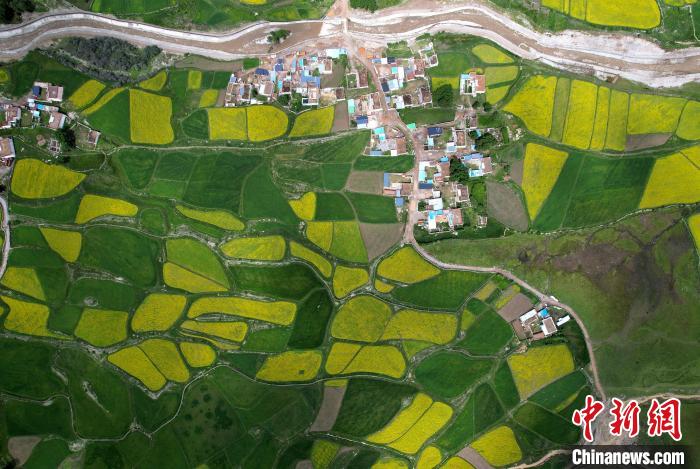 圖為7月10日,拉薩市墨竹工卡縣油菜花盛放。(無人機照片)中新社記者 李林 攝