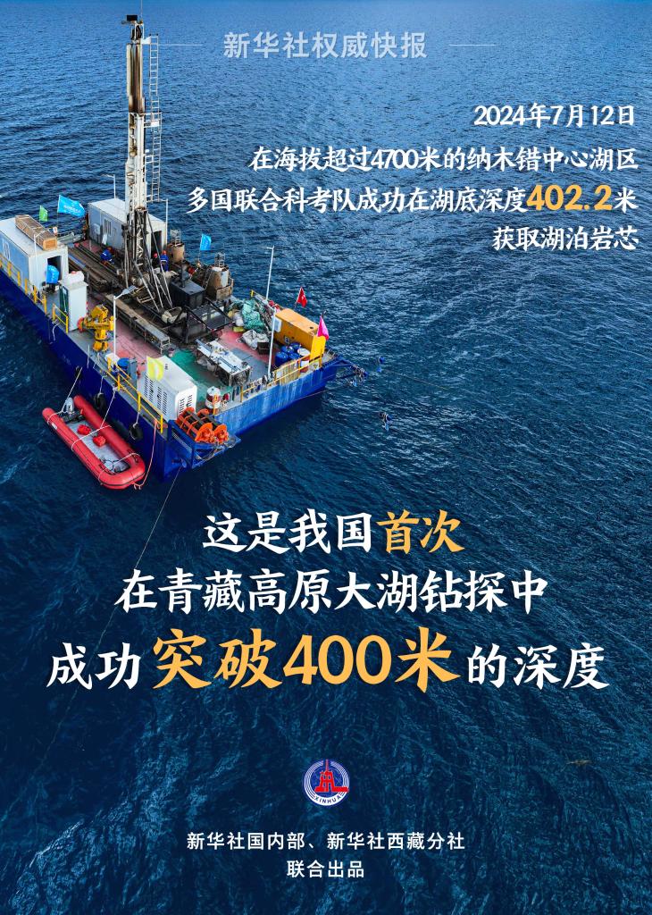 納木錯湖泊科考正在緊密開展。7月12日18時35分,在海拔超過4700米的納木錯中心湖區,多國聯合科考隊經過不懈努力,成功在湖底深度402.2米的地方獲取了湖泊巖芯。這是我國首次在青藏高原大湖鉆探中成功突破400米深度,對我國湖泊鉆探與古氣候的研究具有重要意義。
