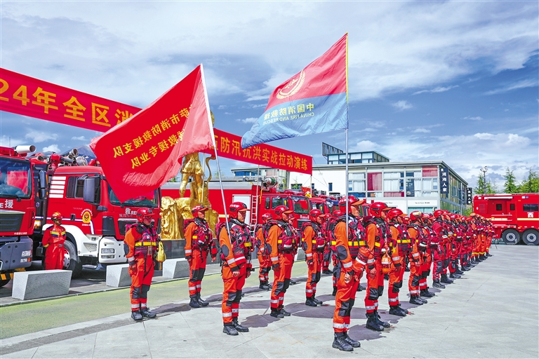 為深入貫徹落實習近平總書記關于防汛抗旱重要指示批示精神,近日,西藏自治區消防救援總隊按照自治區黨委、政府和國家消防救援局相關工作安排部署,聯合區水利廳、公安廳、交通運輸廳、自然資源廳、氣象局等聯勤聯動單位開展2024年全區消防救援隊伍防汛抗洪應急救援實戰演練。