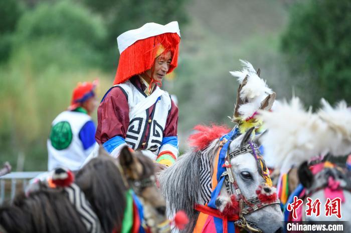 7月21日,西藏自治區(qū)拉薩市堆龍德慶區(qū)馬鎮(zhèn)朗巴村民眾賽馬歡度“望果節(jié)”。“望果節(jié)”民俗已有1500多年的歷史,是國(guó)家級(jí)非物質(zhì)文化遺產(chǎn)。圖為騎手準(zhǔn)備比賽。中新社記者 貢嘎來(lái)松 攝