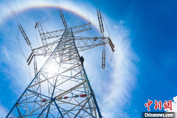 資料圖為電力施工人員在西藏阿里聯網工程開展鐵塔檢修作業。趙清鵬 攝