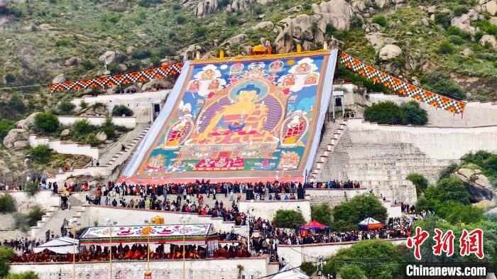 8月4日,拉薩哲蚌寺舉行展佛活動(dòng)。中新社記者 貢桑拉姆 攝