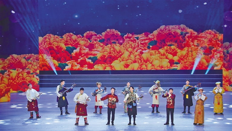 圖為閉幕式上,民族器樂大賽獲獎選手聯奏《琴弦悠揚贊盛世》。記者 鄭璐 袁海霞 攝