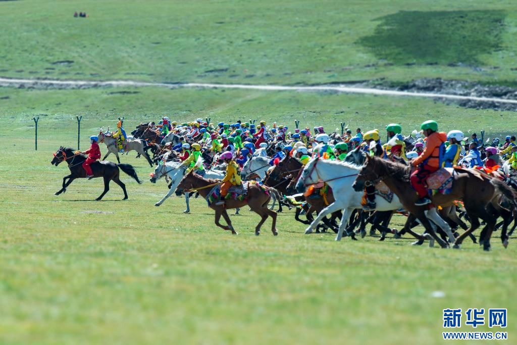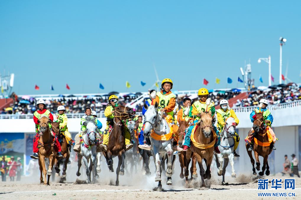8月12日,騎手在傳統十公里大跑項目中角逐。 新華網 旦增努布 攝
