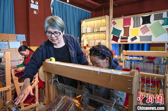 2023年,上海援藏工作隊(duì)引入“上海工匠”郭秀玲領(lǐng)銜的沙涓品牌,通過(guò)“企業(yè)+合作社+農(nóng)戶”發(fā)展模式,打造氆氌制作的“前店后坊”模式。從此,次仁吉巴等一批“阿佳”開(kāi)始學(xué)習(xí)用新型工藝制作氆氌產(chǎn)品。