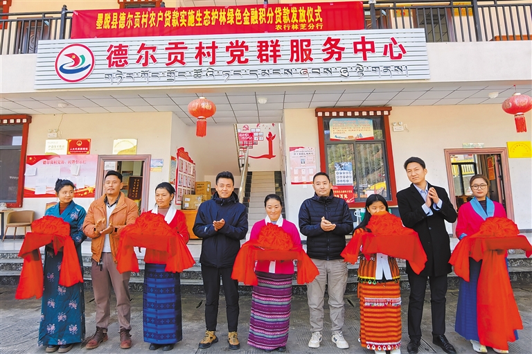 圖為農(nóng)行林芝分行墨脫縣支行推出生態(tài)護林綠色金融積分貸款發(fā)放儀式現(xiàn)場。