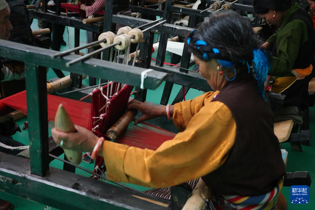 西藏日喀則市仁布縣特色產業孵化園,亞德細褐合作社紡織工人在紡織