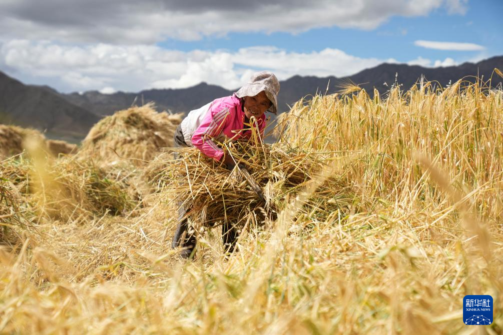 收獲季節,享有“西藏糧倉”美譽的日喀則田野一片金黃。在日喀則市白朗縣巴扎鄉,農民采用機械化、半機械化收割方式,高效收獲成熟的青稞。