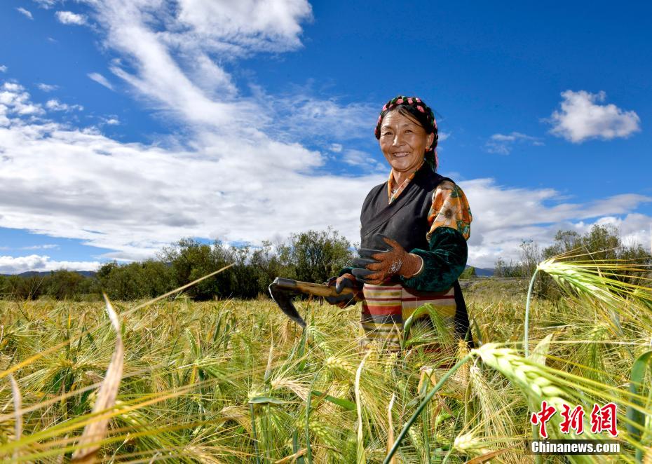 圖為9月14日,日喀則市江孜縣村民準備收青稞。中新社記者 李林 攝