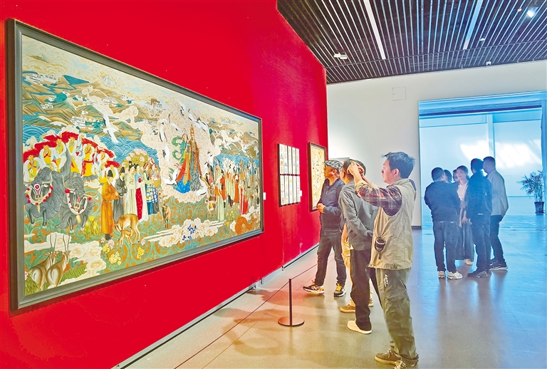 圖為川藏兩地的美術家們和觀眾在參觀畫展。記者 潘璐 攝
