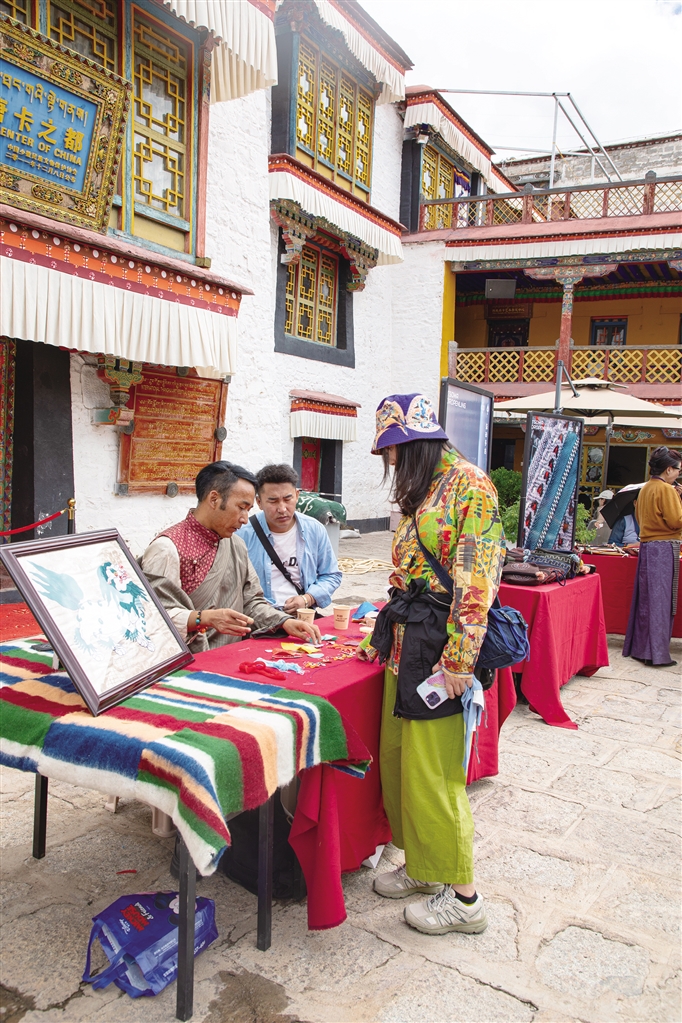 “你看,這個玩偶好別致,而且很有分量感!”走進夏扎大院,來自西安的游客王女士正在卓番林·措瓦店內選購。卓瑪介紹,卓番林·措瓦巧妙融合傳統精髓與現代審美、藝術靈感與生活實用,致力于通過溫馨而富有情感的產品,守護并傳承精湛的手工藝,同時讓西藏的手工藝成為每個家庭溫馨記憶的守護者。