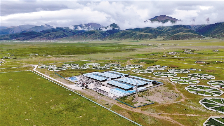 圖為俯瞰拉薩市當(dāng)雄縣龍仁鄉(xiāng)郭慶村牧場。