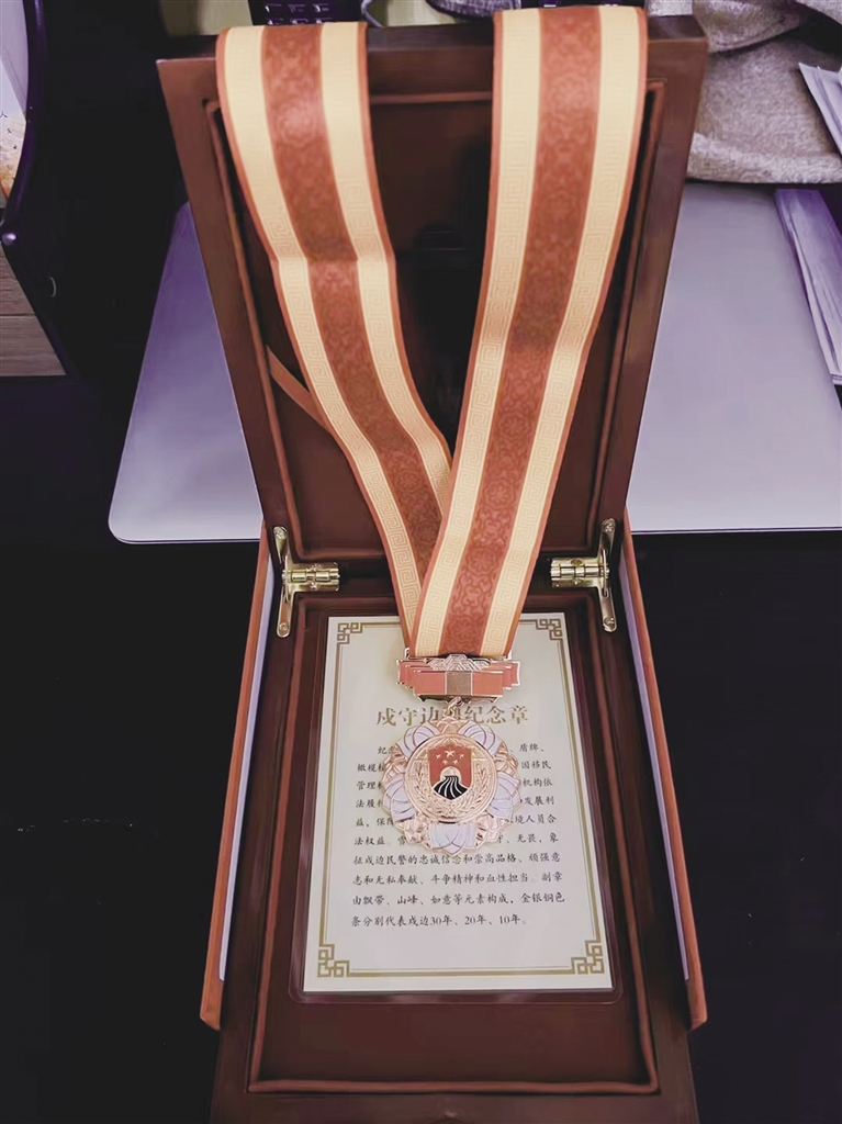 2023年4月17日,拉巴旦增收到了由國家移民管理局頒發的戍守邊疆銅質紀念章,證書上附有說明:金銀銅色條分別代表戍邊30年、20年、10年。目前,拉巴旦增手握銅質紀念章,但他的目光已望向更遙遠的未來,正如他置頂朋友圈里那句擲地有聲的標語:一生只做一件事,我為祖國守邊疆。轉眼14載春秋,拉巴旦增以滿腔熱血和不懈堅持,將年少的小小夢想繪成祖國邊陲的輝煌篇章,深深詮釋了“因為熱愛而值得”。