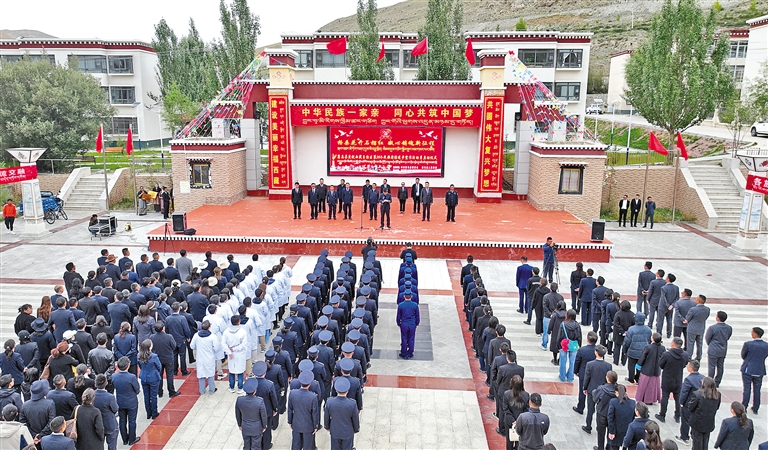圖為康馬縣“格桑花開石榴紅·凝心鑄魂新征程”2024年民族團結進步宣傳活動月啟動儀式現場。