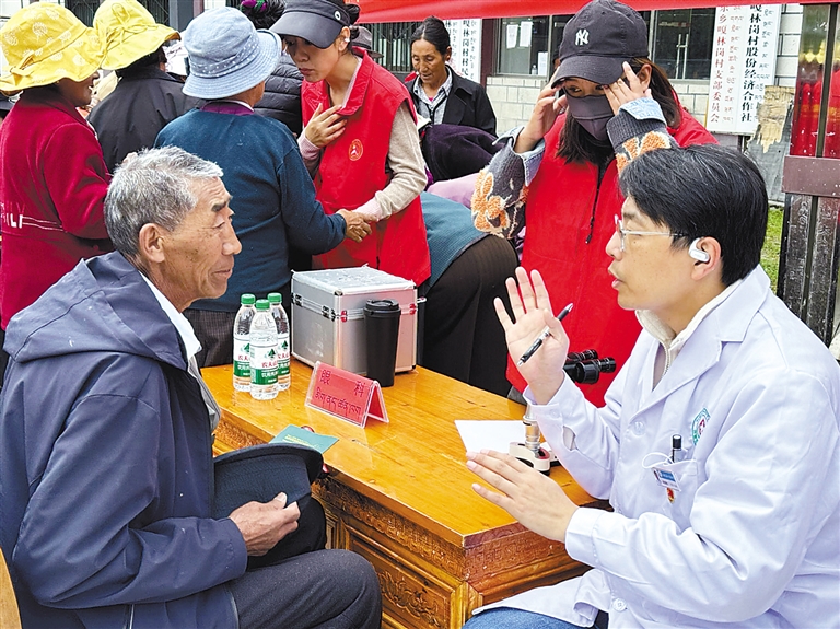 近年來,“組團式”援藏醫療人才與日喀則各族人民群眾結下了深情厚誼。 圖為上海市“組團式”援藏醫療隊在日喀則市亞東縣上亞東鄉開展義診活動。
