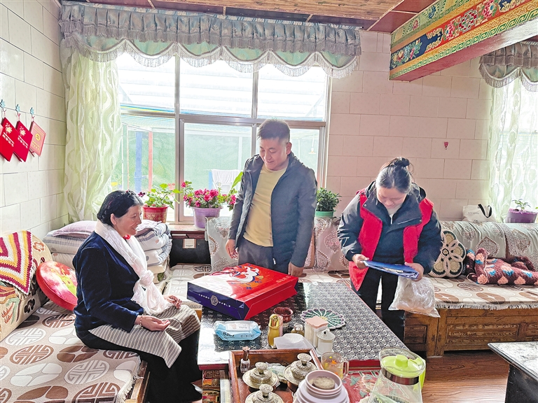 圖為亞東縣帕里鎮工作人員在民族團結通婚家庭開展走訪慰問。(本版圖片均由記者 扎西頓珠 楊子彥 旦增嘎瓦 攝)