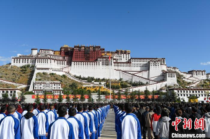 10月1日上午,西藏自治區在布達拉宮廣場舉行“升國旗、唱國歌”儀式,慶祝中華人民共和國成立75周年。中新社記者 貢嘎來松 攝