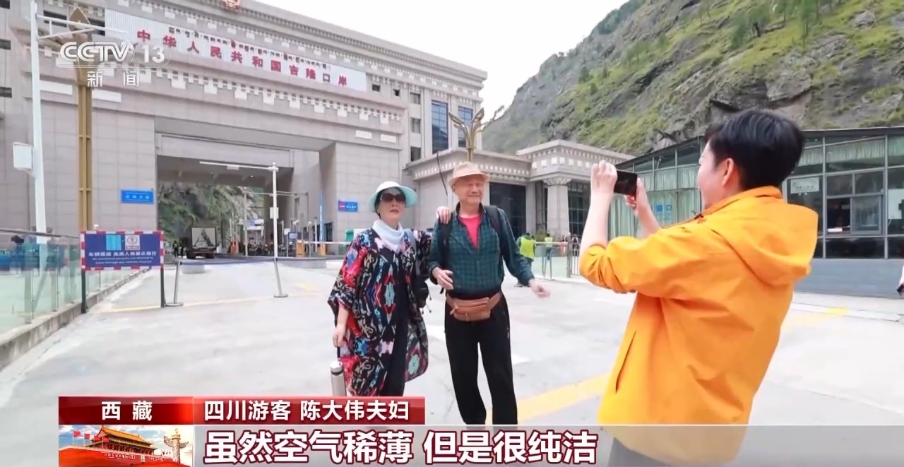 四川游客 陳大偉夫婦:雖然空氣稀薄,但是很純潔,它滌蕩了我的心靈,這是祖國(guó)的大好河山,我們一路上是唱著歌來(lái)的,看到國(guó)門激動(dòng),這就是我們的感受。沒(méi)有新中國(guó)就沒(méi)有今天,趕上這么好的時(shí)光,心有所向。
