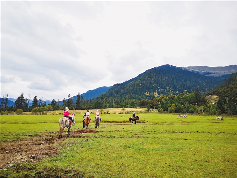游客在林芝市魯朗小鎮體驗騎馬。記者 周輝 攝